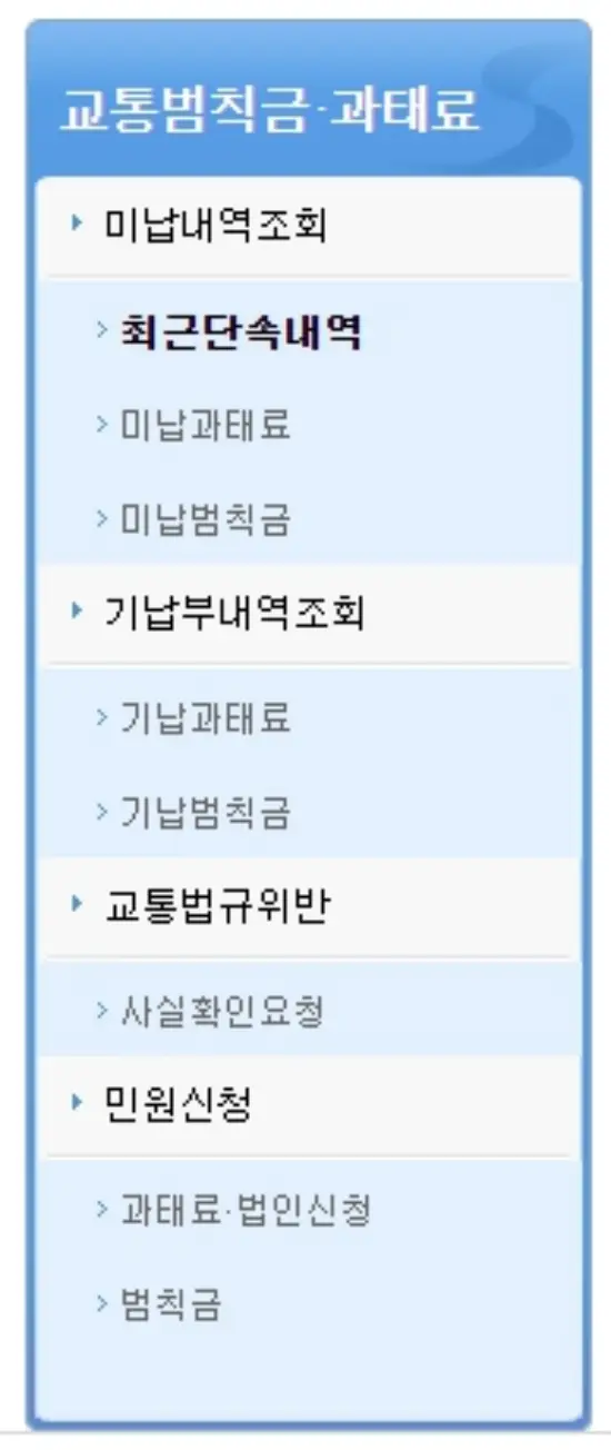 ※ 최근 단속 내역은 과속 및 신호위반 등의 무인단속 장비 또는 캠코더 장비로 단속된 자료이며 사전통지, 2차 기간 내의 미납과태료입니다.